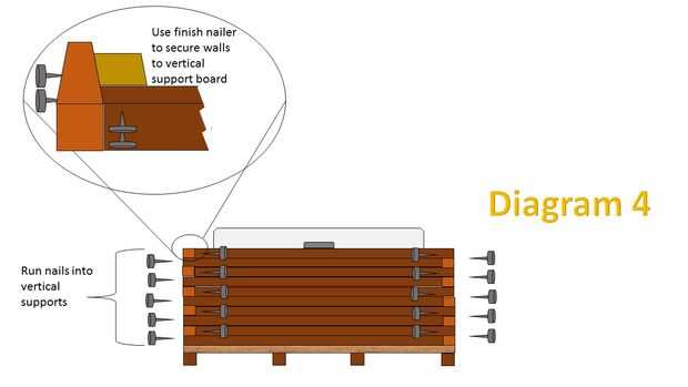Cuando construyó en la parte inferior de la tapa, usé a mi clavadora neumática de acabado para garantizar las paredes para los soportes verticales. Si no tienes un martillo neumático, en su lugar perforar agujeros y clavos viejos oxidados clavos superiores.