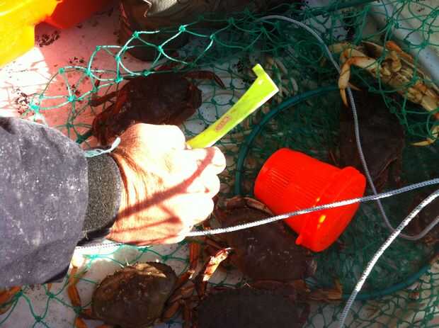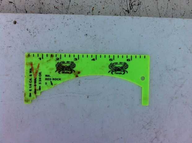 Un cangrejo de dungeness deben ser 6 y 1/4 pulgadas a través de sus conchas para considerarse legal. Los otros cangrejos son legales en 4 pulgadas. Es legal el crabbers recreativas mantener a las hembras, pero si muestran señales de huevos, es ético arrojarlos nuevamente para fines de conservación. Siempre tienen una regla de medir como multas son empinadas. Los gobernantes también tienen fotos que muestran la diferencia entre machos y hembras. Los huevos son de color naranja brillante y agrupadas en el área del vientre de las hembras-son evidentes.