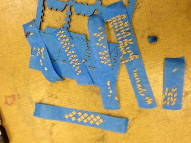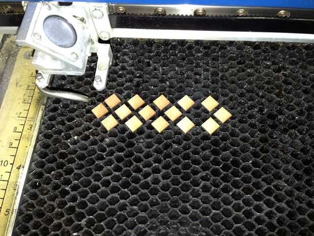 Estuve cortando chapa para un proyecto de embutido en las cortadoras láser en TechShop, y tenía mucho de trocitos pequeños para recoger de la red de vector láser. Es mucho más difícil de lo que parece - por alguna razón, usted apenas no puede conseguir sus dedos o uñas debajo de la pieza para recogerlo.