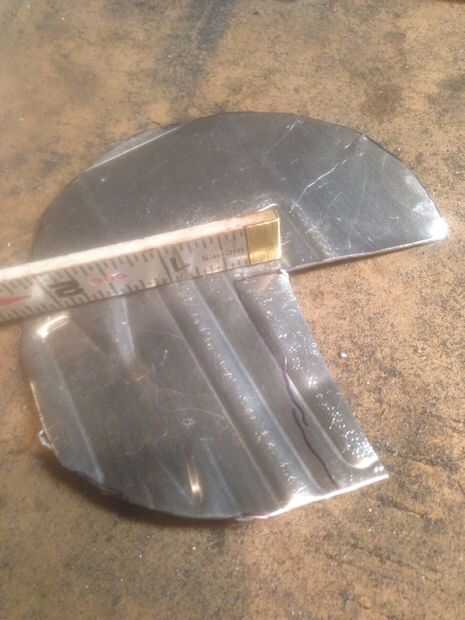 Cuando corté el aluminio se encajan en el patrón que transferí a la parte posterior de la placa vieja he dejado 1/2 pulgada extra en un lado de la cuña que falta. Esto hará un compromiso para que pueda hacer un cono y utilizar remaches para sujetar en su lugar.
