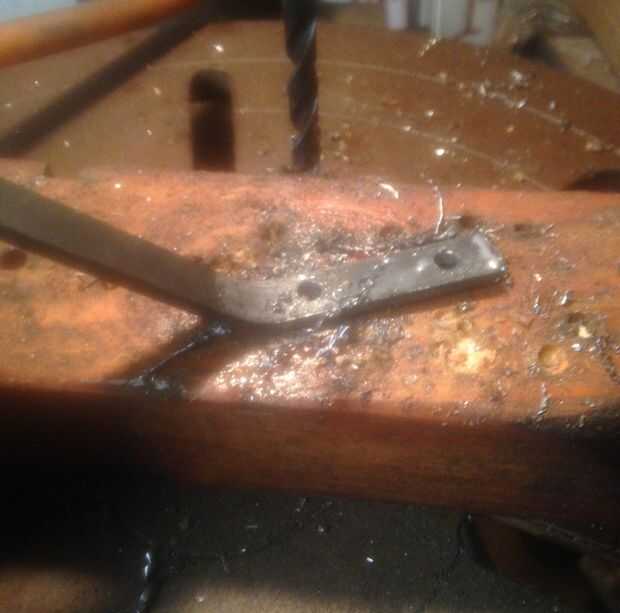 Perforé dos agujeros en la parte doblada de la barra para remaches.