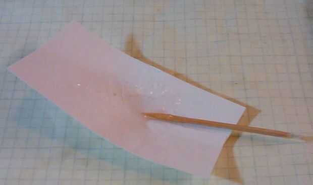 Mi técnica de encolado fue a verter hacia fuera de un pequeño charco del pegamento en un trozo de material de desecho y luego usar un palillo de dientes para sacar con pala encima de la cola y extenderlo uniformemente sobre la superficie de la pieza. Después se juntan las capas luego ponerlos debajo de un gran libro para asegurarse de que se secan completamente.