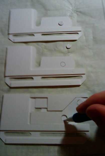 Coloque el brazo en el pequeño pedazo usted montado pasado paso y rastrear la ubicación del agujero. Pegar con cuidado el círculo sobre las marcas de traza y cuidadosamente hacer doble comprobación que el brazo todavía Alinee correctamente y también asegurarse de que no estás pegando el brazo a cualquier cosa.
