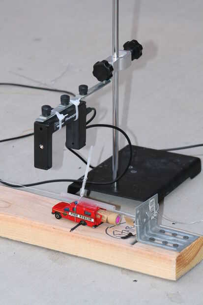 El propósito de este laboratorio fue a ver a qué velocidad en km/h que un coche caliente de las ruedas podría viajar si hemos añadido un motor de cohete a él. Pasamos por muchos obstáculos a lo largo del laboratorio como los photogates no recoger los