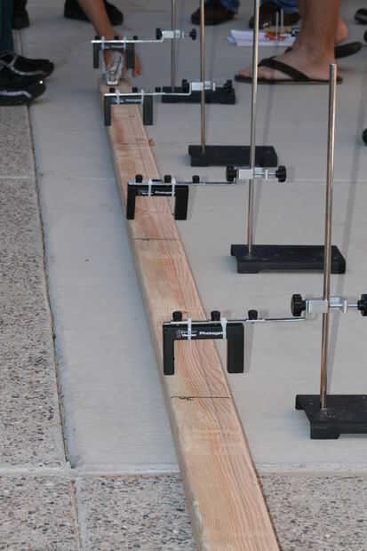 OK para los negro boca abajo las cosas de la 'U' que estamos usando se llaman photogates. Si usted quiere conseguir algo o quiere saber más sobre ellos en detalle mejor entonces lo que voy a contar aquí es un enlace a la página http://www.vernier.com/probes/vpg-btd.html . OK así que aquí está mi breve explicación de lo que hacen estas cosas. Los utilizamos para registrar la aceleración de los coches cuando "rompe" un rayo láser en los photogates. Todo esto permite el uso para tener información precisa acerca de qué tan rápido hacia fuera poco coches van.