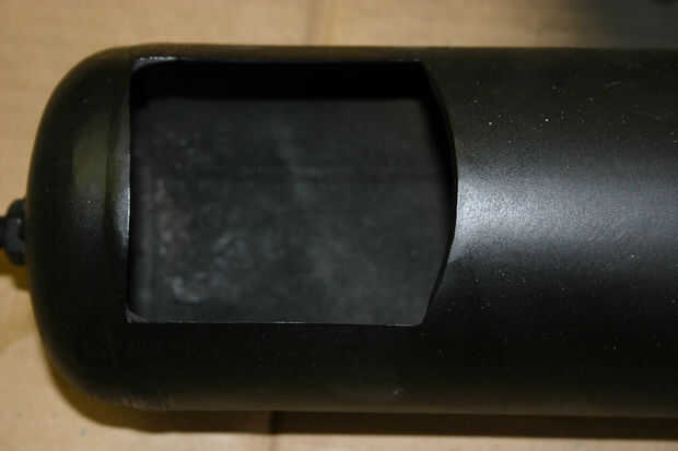 Corte la punta y abrir el tubo también desde el lado. Las dimensiones del hoyo dependen de su lateral de apertura en la estufa.
