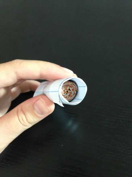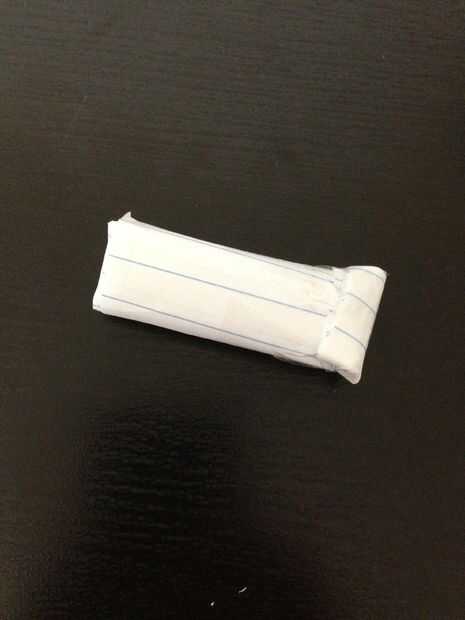 El periódico en el papel de la cinta. Deja sobre la brecha de 0,5 pulgadas en un lado. Corte a la izquierda sobre la parte en el otro lado y cinta adhesiva.