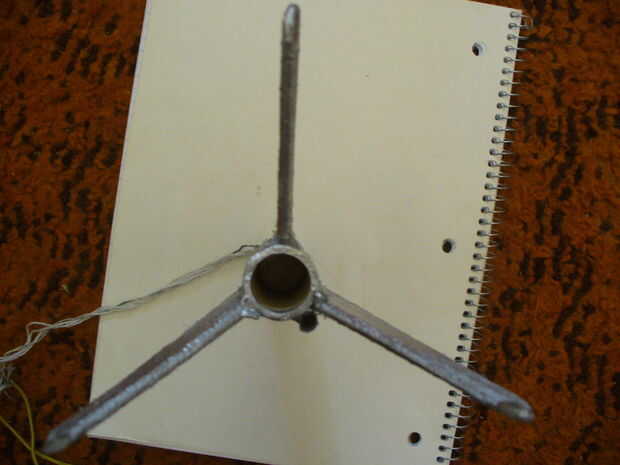 Utilice una pistola de pegamento caliente para esto como funciona mejor. Primero aplique el pegamento en un lado de la aleta, luego aplique el pegamento a lo largo de la marca en el tubo del cohete con cuidado. Empuje con cuidado los dos juntos. Agujas para decir (pero lo diré de todos modos) esto es más complicado de lo que suena. Si necesita hacer ajustes, hacerlos rápidamente. Mántengalo en esa posición durante unos diez segundos. Ahora repita esto para las otras dos aletas, pero recuerde que deben ser las dos aletas en tercios de uno al otro, o de 120 grados. No te preocupes si es un poco off o torcido, pero si es sensible o si tienes estándares altos cohetes, cuidadosamente puede romperlos (si la madera es suficientemente fuerte-no sé acerca de balsa) y vuelva a intentarlo. Cuando haya terminado, que pegamento seco con las aletas hacia arriba (o cohete invertida). Cuando esta esté seca, (yo, no ser un experto, espere no más de 30 minutos.), aplicar el pegamento a ambos lados de cada aleta y deje este seco con las aletas hacia abajo (o cohete normal posición).