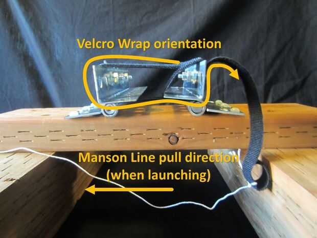 Wrap cinta velcro 23 pulgadas X 7/8 pulgadas alrededor de uno de los brazos de la abrazadera de la plataforma de lanzamiento asegurándose de que se alimenta a través del extremo del lazo de la correa de Velcro. Se recomienda utilizar el brazo de fijación del cojín del lanzamiento en el lado opuesto del cabezal de la bomba de bicicleta Base de plataforma de lanzamiento de corte.