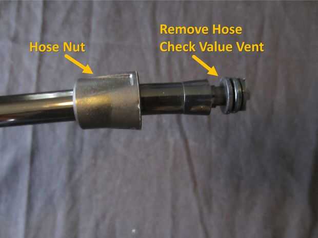 Usando un par de alicates de punta, quite el ducto de valor Compruebe la manguera de la bomba suavemente tomando el respiradero y mecedora mientras alzaprimar hacia fuera.