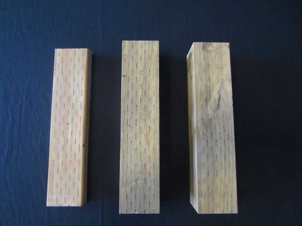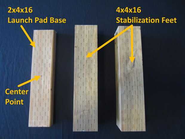 Presión de corte dos 4 X 4 tratada madera a 16 pulgadas de largo; Esto se convertirá en las patas de estabilización de la plataforma de lanzamiento.