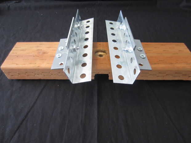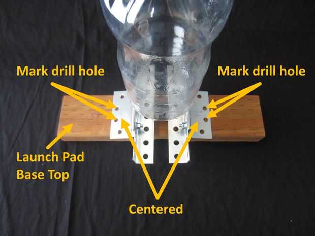 Asegurando las abrazaderas de la plataforma de lanzamiento mitades están centradas en la base de la plataforma de lanzamiento, marque los orificios para los dos orificios internos de ambas bisagras en la Base de la plataforma de lanzamiento.
