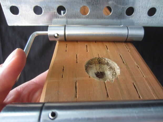 Nota: Asegúrese de que usted mira sus manos y otras partes del cuerpo; estas bisagras con los soportes de metal llegan con fuerza y puede cortar mal si cuidado de no.