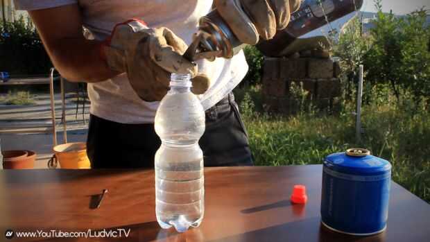 En el paso anterior que mostrado cómo sacar el gas, ahora tenemos que poner el gas directamente en la botella con agua tibia.