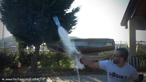 Sólo necesita girar a la botella y dejar que salga el agua y... BOOM!