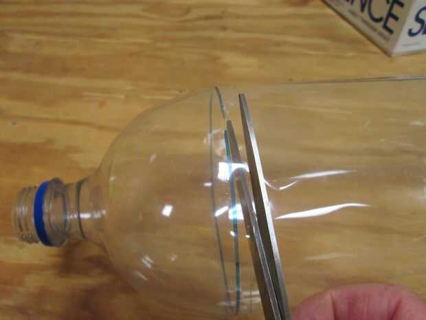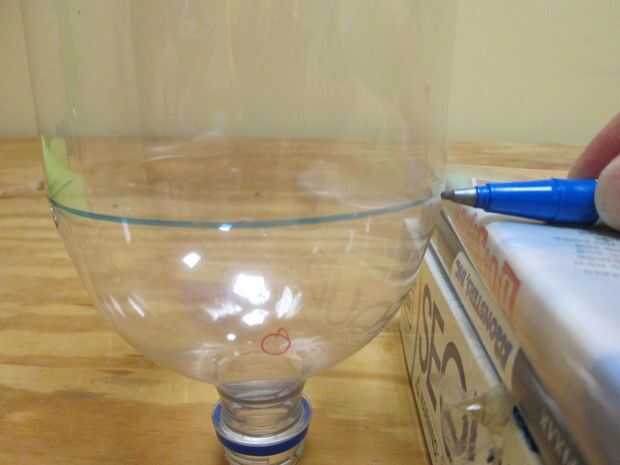 La botella es de un diámetro mayor que los tallarines que se utiliza para la nariz. Para hacer una suave transición, tomar una botella de 2 litros y marca una línea alrededor de él en su diámetro más grande antes de que empieza disminuyendo para hacer la tapa de la botella (ver primera imagen). Me parece una manera fácil de hacer una marca agradable alrededor de la botella es ajustar la abertura de la misma sobre la mesa, poner un rotulador en un punto fijo en la parte superior algunos libros o bloques o lo que es útil y girar con cuidado la botella contra el marcador.