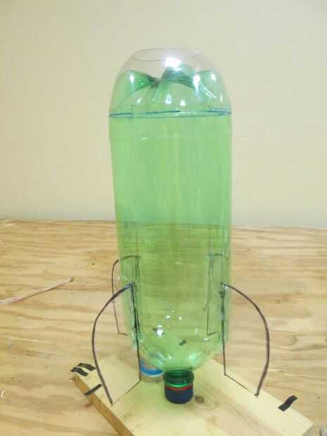 Este pegamento a la parte superior del cohete (fondo de la botella de 2 litros de sección de refuerzo)