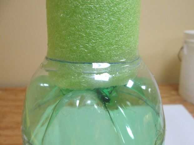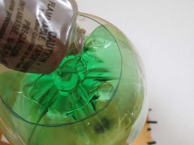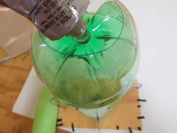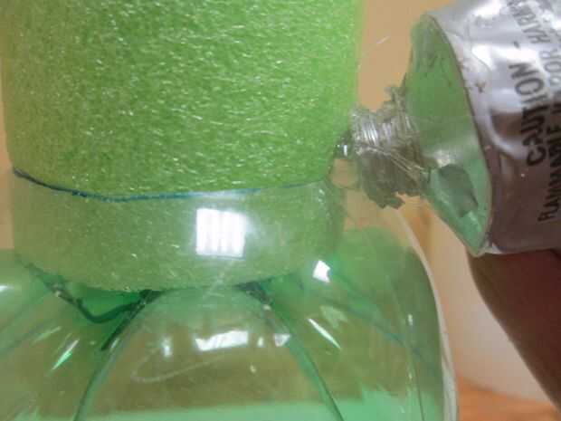 Poner una cucharada de buen tamaño de pegamento en el centro de la botella utilizado para el refuerzo