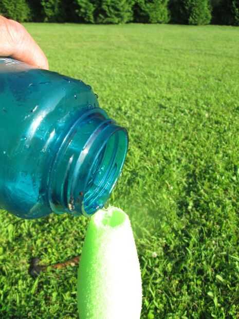 Para lanzar el cohete de la botella, llenar la botella de 1/2 lleno de agua.