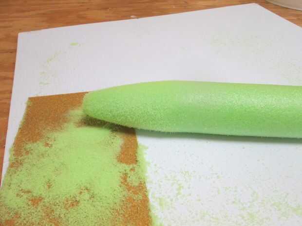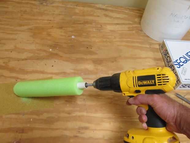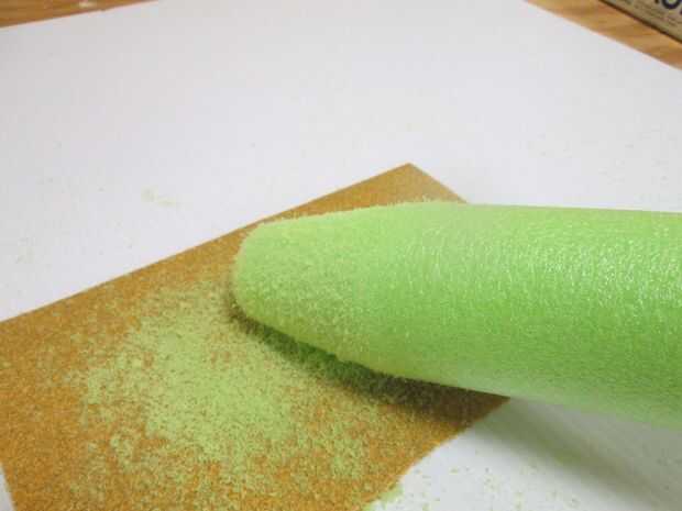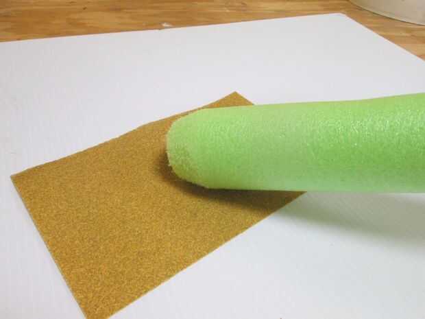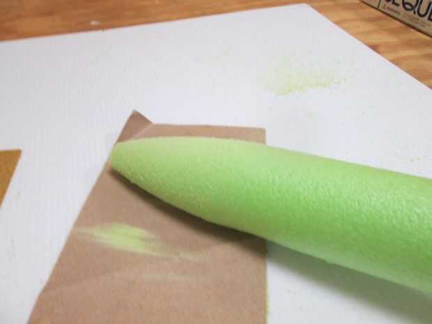 Empiezo con un pedazo de papel de lija de grano 80. Los tallarines de la espuma de la vuelta y comenzar a trabajar en el papel de lija.