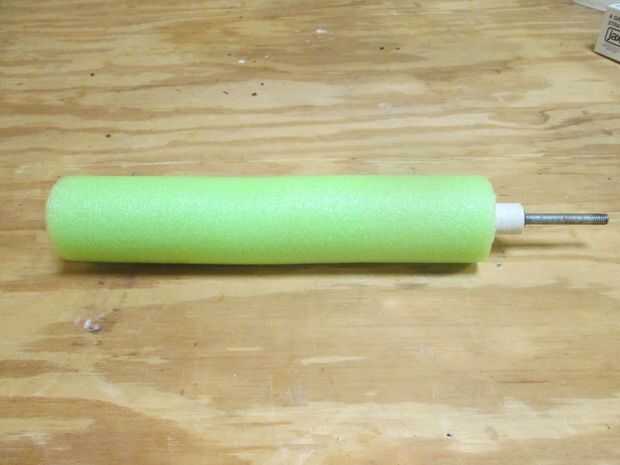 Tomar el mandril que sólo hechos e inserte en los tallarines de la piscina. Debe quedar bastante cómodamente. Si está floja, envuelva alguna cinta adhesiva alrededor del tubo en un par de lugares para construir el diámetro hasta que se ajuste cómodamente.