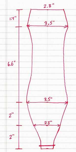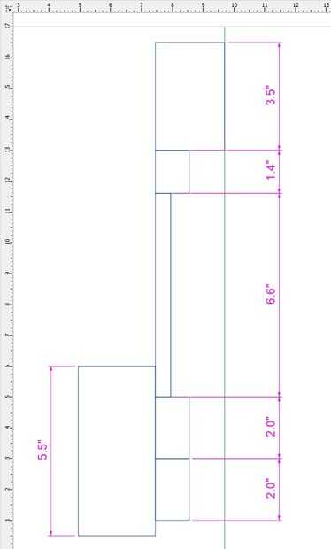 Convierte estas medidas en una serie de rectángulos de referencia. La altura de cada rectángulo coincide con las claves dimensiones verticales en el diagrama dibujado de la mano. Se ha añadido un rectángulo en la parte superior donde va el cono de nariz. También he añadido un rectángulo al lado de la base donde irá la aleta. Decidí que quería la parte larga del marco (que se ejecuta la mayor parte de la longitud de la botella) ser 0.5" de ancho, y que se convirtió en la base para la anchura de los otros rectángulos. Si entrecerrar los ojos puede ver que estos rectángulos representan un esquema muy grueso de un lado del cohete.