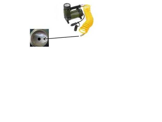 Perfore un agujero que es el mismo diámetro que el extremo de la manguera de aire comprosor.