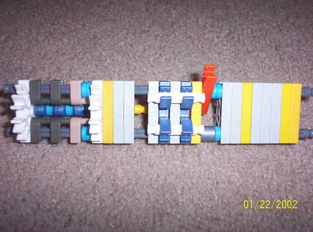 gatillo fácil del bloque con la opción de poder y autocock ajustablePaso 1: recoger piezas y poner junto 5 conectores rojo1 conector naranjaConector gris 25 barras azulopcional 1 barra blancotomar 3 conectores rojo apilarlasPaso 2: Añadir 2 barras az