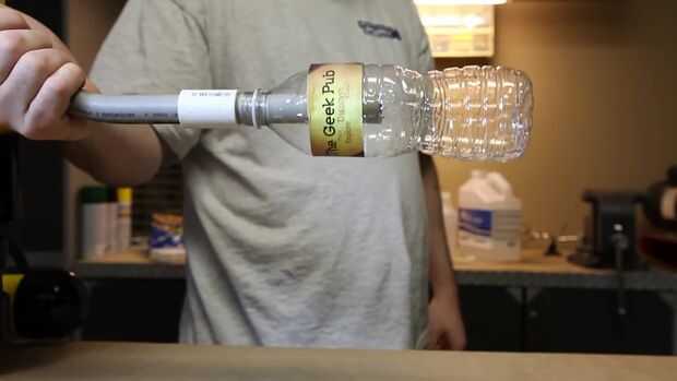 Rápidamente, antes de que el alcohol tiene la posibilidad de atomizar, inserte el launchpad de la botella, oriéntelo y tire del gatillo.