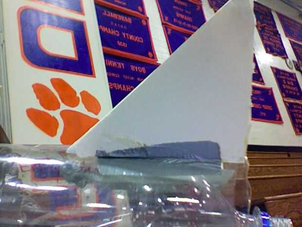 Eric Jordan Steph.Paso 1: Reunir los materiales Lo que usted necesita:2 dos botellas de dos litros de gaseosa (vacío)Uno (1) botella de tres litros de soda(empty)1 un paquete de cadena deUno 1 rollo de cinta de pintor azul1 una caja de cartónLona de
