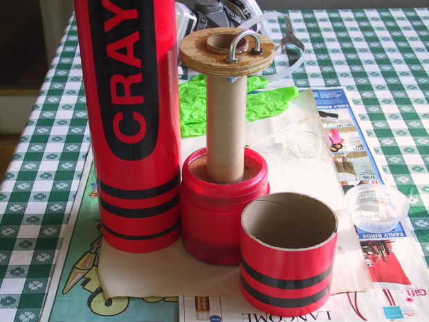 Los anillos de centrado son ligeramente diferentes diámetros dependiendo de donde vayan a colocarse en la parte inferior del cohete. Los anillos dentro de la porción más ancha de la base de plástico son los más grandes. El anillo dentro de la porción de la base de plástico que encaja dentro del tubo de cartón es más pequeño. El anillo en la parte superior del montaje del motor es un tamaño medio que se ajusta perfectamente dentro del tubo de cartón.