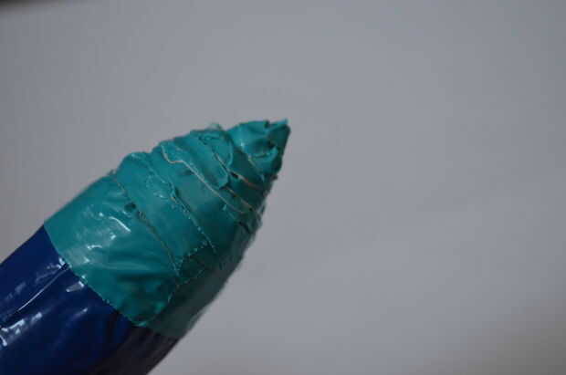 Ser creativo con la cubierta de cinta del cono de nariz. Utilizamos tiras muy delgadas de cinta que culminó con una punta arriba agrupados. Usted podría intentar hacer un cono doblado de la forma de la cinta, entrecruzados... lo que parece razonable a usted. No sobra para añadir un poco de masa en el cono de nariz, pero no va por la borda.