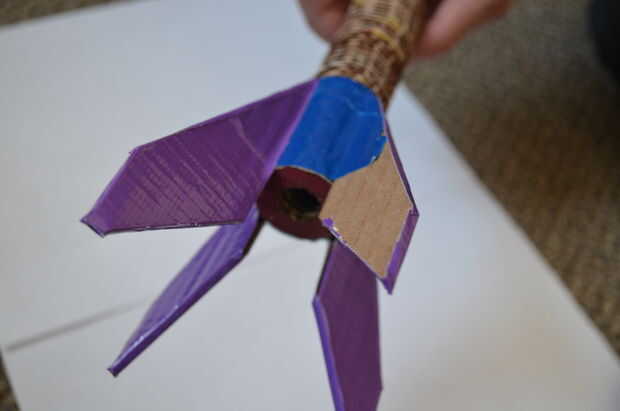Cubre las aletas con un lado de la cinta a la vez, superposición cuidadosamente en los bordes. Demasiada superposición agregará a granel que el cohete llegue a su máximo potencial.
