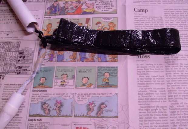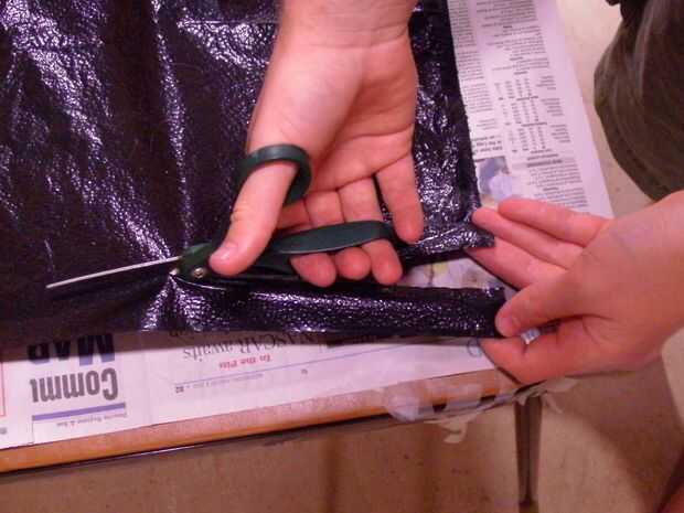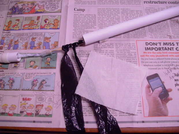 1. cortar la bolsa en ~ 1" amplia tiras que son ~ 5' largo. (Atarlos juntos si es necesario.)