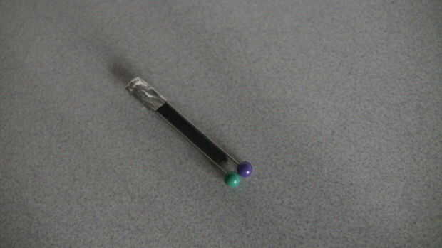 Usted absolutamente debe mantener las agujas al ras con el lado del partido, lo que cada hoyo solamente el tamaño de la aguja, no más grande o más pequeño, luego cuidadosamente del molde el papel de aluminio alrededor de la cabeza de partido, como se muestra la imagen, mantener los agujeros el tamaño de las agujas.