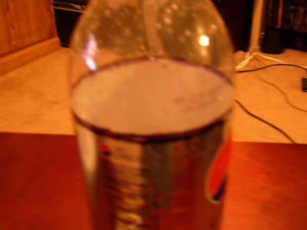 OK ahora toma bolth botellas y utilice el marcador para hacer un anillo alrededor de la parte superior de la etiqueta para que la mitad del marcador está en la botella y la otra mitad está en la etiqueta.