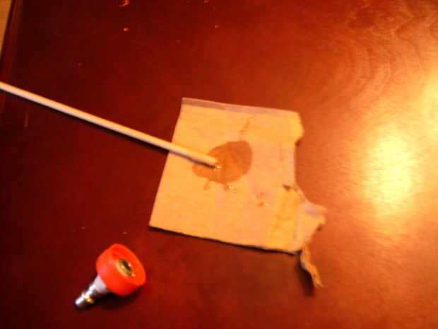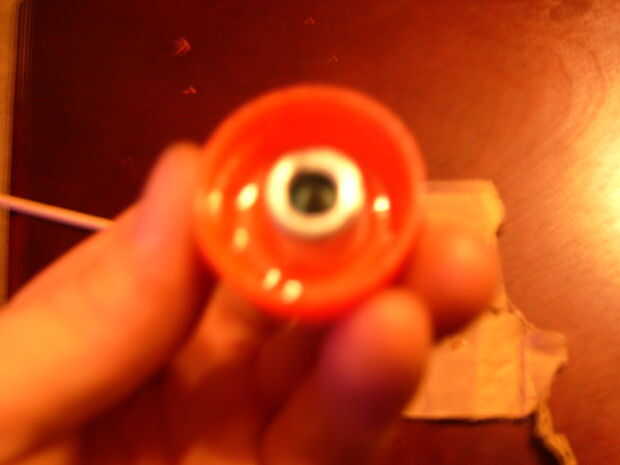 Entonces Pon tu dedo sobre el nossil y el golpe (los labios en el borde de la tapa y todo) en él. Esto debería hacer que cualquier huecos entre la rosca y el casquillo se llenan de epoxy.