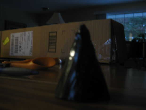 Paso 4: Curl el semicírculo hacia arriba hasta la parte inferior del cono es igual a la circunferencia de la parte superior de su tubo de cartón (hasta que encaje bien en la parte superior)