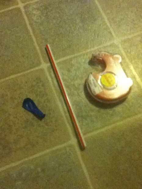 Todo lo que necesitas para este proyecto es un globo de agua, paja y cinta
