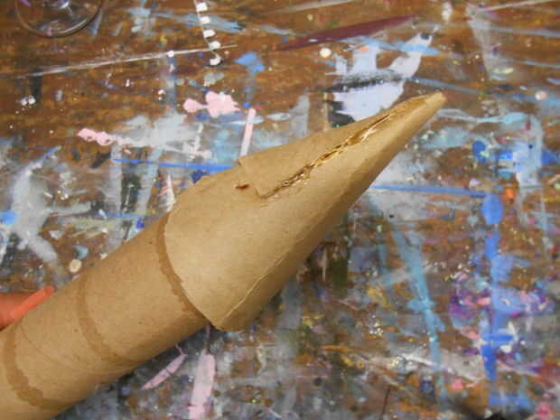 Todo lo que queda por hacer es crear el cono de nariz y conecte el ensamble del motor. Para el cono de nariz, rodillo algún cartón extra en la forma de cono, cerrado, pegamento y deslícelo sobre el extremo delantero del cohete, pegado en su lugar. Habrá algunos cartulina extra aleteo alrededor en la base del cono de nariz. Clip de con unas tijeras.