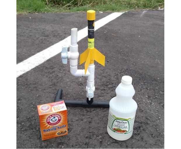 Siempre he querido tener mi propio cohete. Así que hice lo que hace cualquier persona con imaginación, construí uno. He utilizado tubo de PVC para la plataforma de lanzamiento y el cohete, y para mi combustible, utilizo vinagre y bicarbonato de sodio.
