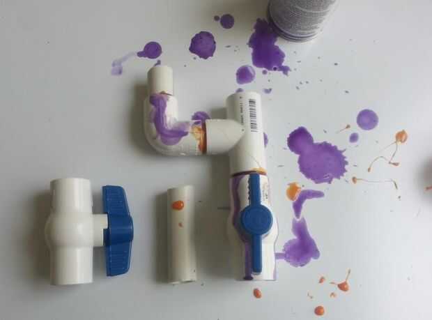 - 1 ½" sección en la articulación del codo a la abertura perpendicular de la Unión en t de cemento. Asegúrese de que los puntos del codo de la válvula de bola.