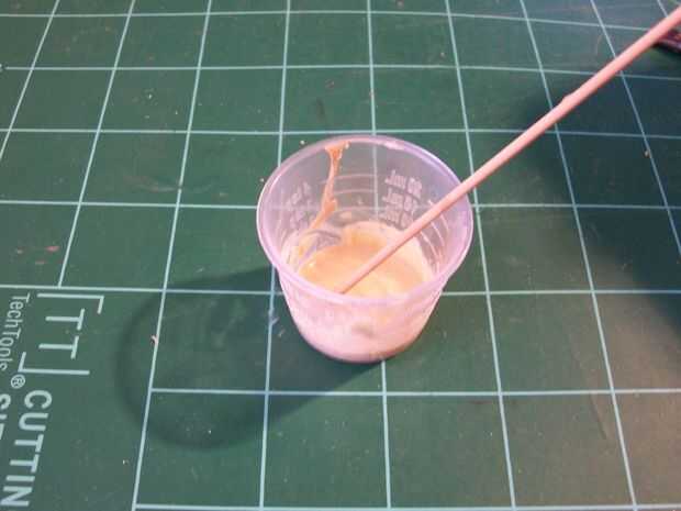 Para proporcionar fuerza adicional a los soportes de aleta, disolver un poco de pasta de madera (madera plástica u otro) en acetona para crear una mezcla espesa pero fluida (Figura 20).