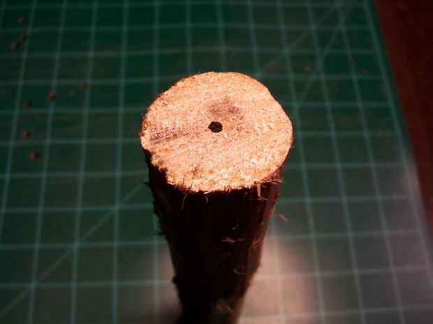 Desde ramas de sauce no son perfectamente cilíndricos, es difícil utilizar un método estándar de encontrar el centro de cada uno de los extremos cortados. Utilice su propio juicio para marcar el centro de cada extremo del sauce corte (Figura 3).