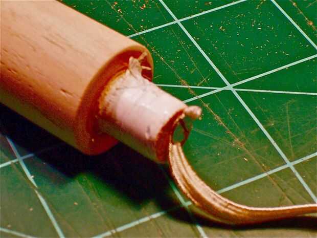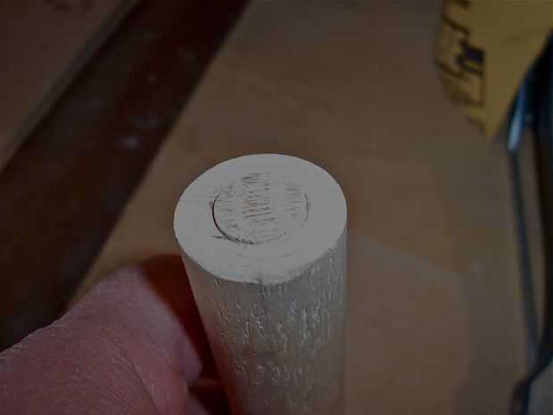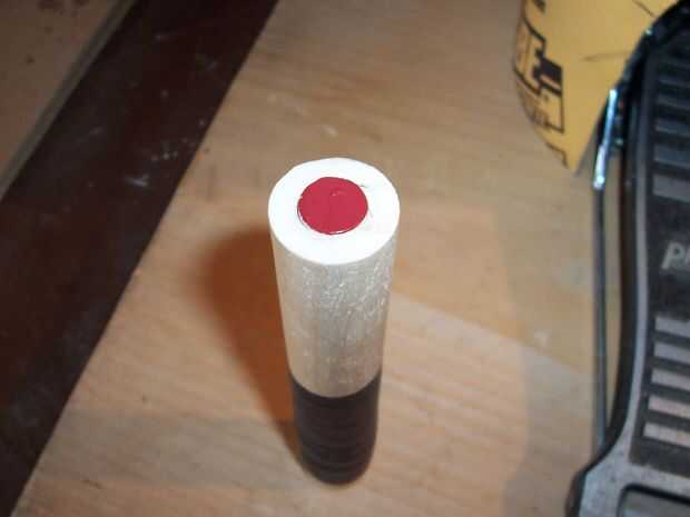 Forme un tapón corto para colocar en el cono de nariz de madera del sauce, un taco o cualquier otra cosa de su elección. Debe ser un poco más pequeño en diámetro que el diámetro del orificio en el extremo del cono de nariz del tubo del cuerpo y alrededor de la mitad una pulgada de largo.