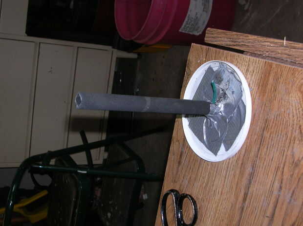 este es el lanzador. es muy fácil de make.all es es un conducto de tubo pegado a la tapa del bote de yogurt, con un pequeño orificio que penetra en el tubo para el fusible. todo lo que hacemos ahora es el cohete abajo del tubo de la gota y meter en un fusible. el fusible de la luz y reloj. Espero que funcione para usted mucho. ser amable. Este es mi primer instructable.