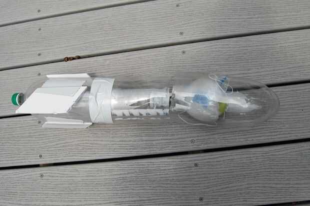 encanta hacer cohetes de botella de agua, pero no se poner en el trabajo para hacer uno con aletas y remotos comunicados y toda esa basura, por lo que he hecho un cohete que es sólo tan divertido pero es tan simple que mi hermano de 5 años de edad am
