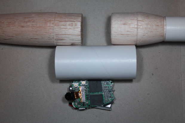 Siguiendo las instrucciones que vinieron con su cohete, construir el cohete pero dejar todas las piezas de la bahía de carga útil sin tocar y sin acabar. Estas piezas incluyen: ojiva (parte superior), Bahía de carga útil de tuboy Bahía de carga base (parte inferior). Estas piezas tendrán que ser modificados para acomodar la cámara Llavero primero. No coloque el tornillo de ojo a la base de la bahía de carga útil. Os adjunto el tornillo de ojo cuando construí mi cohete, pero le ahorrará algunos problemas si fija el tornillo de ojo después de las modificaciones. Además, no pinte nada todavía.
