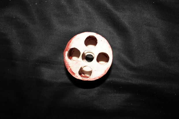Para montar el bloque del motor tome el tubo pequeño y 2/3 a 3/4 como mucho tiempo como los motores que va a utilizar. Luego capa dentro del tubo en un extremo con pegamento, ser generosos con el pegamento aquí desde que las fuerzas en esta parte son grandes. Luego introducir el círculo que encaja en este tubo y hacerlo a ras con el extremo del tubo. Ahora toma el círculo con los pequeños agujeros perforados en la misma y pegar a la parte superior del círculo ya insertado en el tubo. Asegúrese de que los orificios de las dos piezas se alinean. Tomar el último círculo y péguelo al otro extremo del tubo alineando los agujeros con el otro dos círculos (un truco para obtener la parte superior e inferior alineado es utilizar un motor o dos para probar alineación).