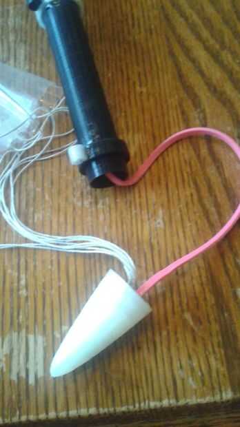 Atamos el paracaídas en el cono de nariz en el lugar de fijación para el tubo superior como lo hicimos en versión.